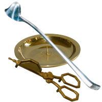 - 1 versilberter Kerzenlöscher, 1 Messing Kerzenlöscher und 1 Kerzenuntersatz