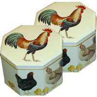 - 2 schöne Metalldosen in Güggel-Design, nicht nur für "Guetzli"